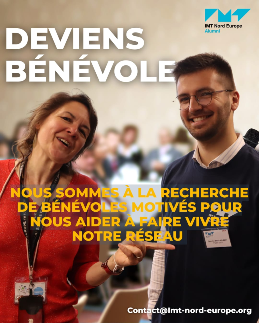 Ainsi, si tu souhaites t'investir avec nous dans ce beau projet qu'est celui d'accompagner tous les diplômés à trouver leur place dans le réseau, propose nous ta candidature pour le 15 octobre 2025. Pour cela, il te suffit d'envoyer un mail avec tes contacts à Céline notre formidable assistante (contact@imt-nord-europe.org ).